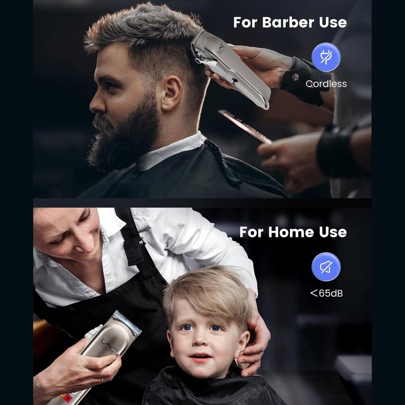- Premium Accessories Included : This professional barber clippers sets comes with a cordless hair clippers, premium accessories,including 10pcs hair clippers guard attachments (1.5-25mm & left/right ear taper), barber cape, comb, cleaning brush, USB cable.