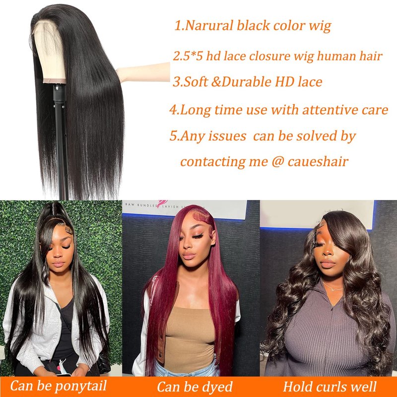 - 5x5 HD Lace Closure Wigs Material: 100% Virgin Brazilian Human Hair, 10A Grade,Can Be Dyed, Bleached, Straightened. Soft and Health Texture, No Shedding and No Tangle!