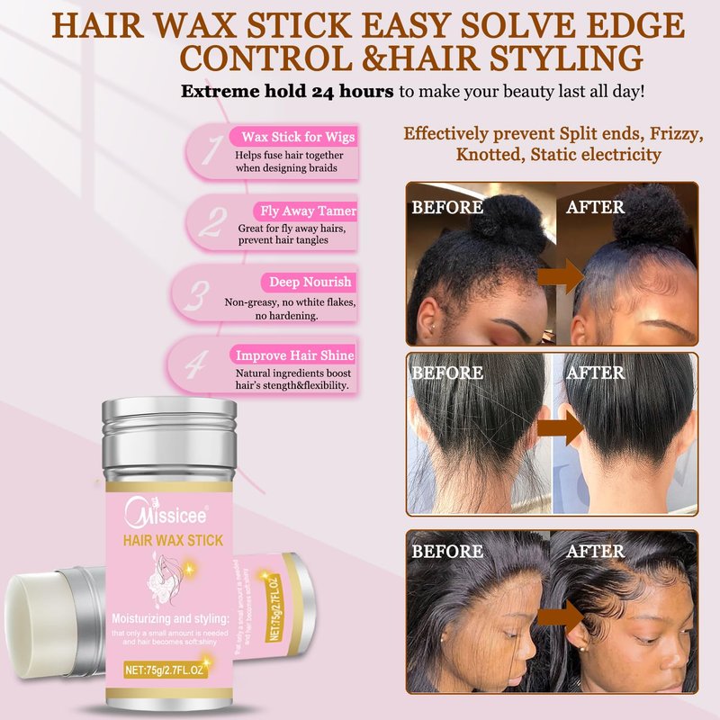 - 【Hair Wax Stick & Edge Control Gel】In order to get fashion and glamorous braid, lock or twist hairstyles. Hair wax stick & edge control gel is the best partner. You can first use the super hair wax stick holds your flyaways/stray hairs in place and smooth edge frizz hair, while boosting shine. The edge control gel keeps your hair moisturized, soft, manageable, allows you smooth baby hairs, temples and sculpt your own edges style and lets you shine a whole day.