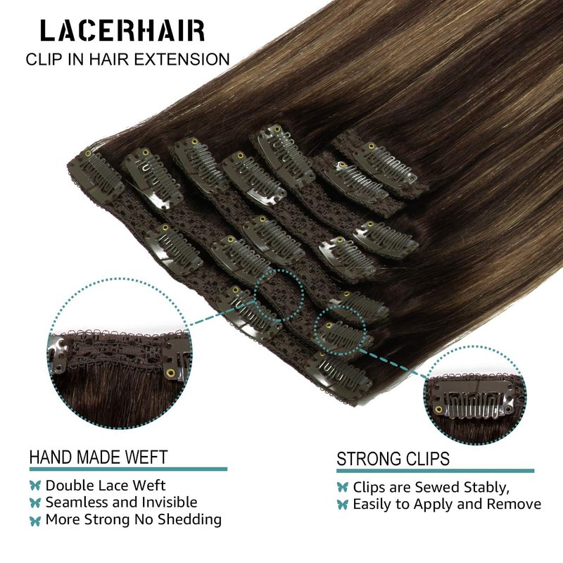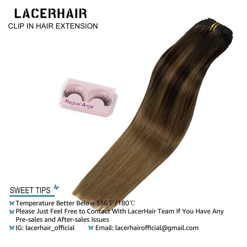 Hair Detail: Material: 100% Remy Human Hair. Weight: About 120 grams/4.23 oz 140g grams/4.93 oz Length: 14" 120g; 16" 120g; 16" 120g; 20" 140g; 22" 140g. Why Choose LacerHair? Get longer, fuller hair in just 5 minutes with clip-in Lacer Hair extensions. 1. EASY TO USE No hairstylist? No problem! Clipping in Lacer Hair extensions is easy to do yourself in just minutes. 2. INSTANT LENGTH When it comes to your hair, instant gratification is a good thing. We don’t think you should have to live with a bad haircut or hair that just won't grow fast enough. Luxy Hair extensions will give you long hair without the wait. 4. COLOR YOURSELF HAPPY Craving a change but don’t want to dye your hair? Experiment with highlights that never grow out. 5. NO DAMAGE Unlike other types of hair extensions, Luxies can be clipped in or taken out whenever you want. Best of all, they’re totally safe to wear every day and cause zero damage to your natural hair. 6.MORE HAIRSTYLE OPTIONS We think a girl should have options. Try out a new hairstyle for special events like a wedding, prom, or a hot date. Nothing planned? Rock a new ‘do every day of the week! 7. WE TREAT YOU LIKE A FRIEND Got a styling question? Need some hair advice? We’re always here to help. We’ll get back to you within 24 hours, 7 days a week.