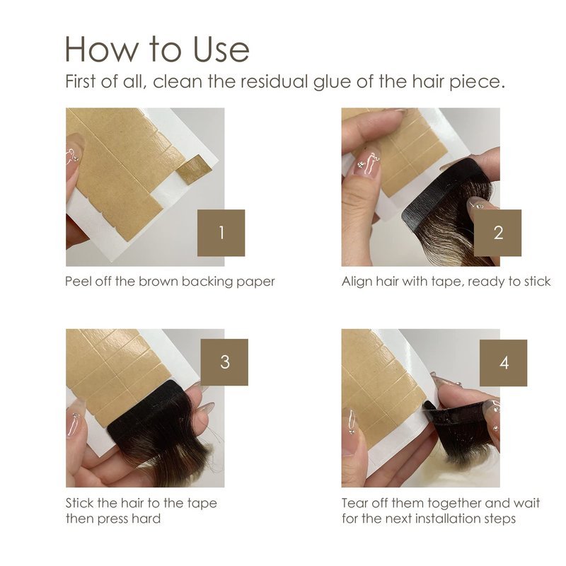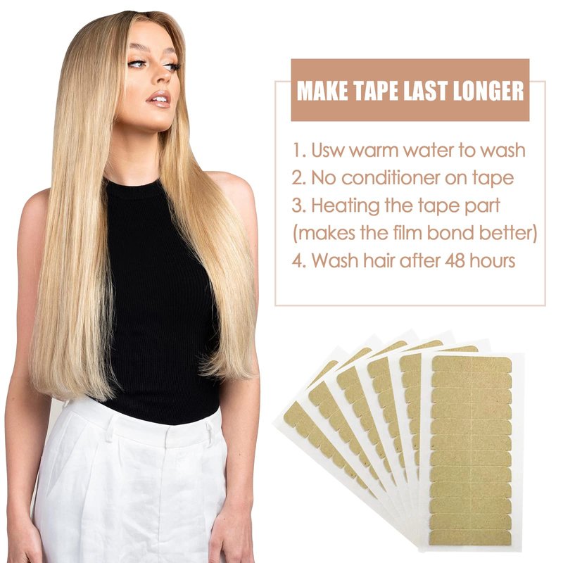 - 【Easy to Apply & Remove】Each hair extension tape has a pre-cut in the middle, which is convenient for you to peel and stick. We recommend to heat it while installing so that it can stick more securely. Please use professional tape remover while removing it, easily removed from hair without sticking.