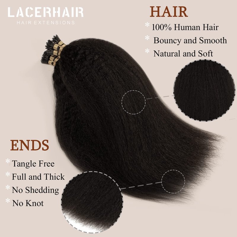 Lacer Hair Kinky Straight Hair I Tip Hair Extensions Natural Human Hair 22 Inch I Tips Human Hair for Black Women Cold Fusion Microlink Hair Extensions Human Hair 50 Gram 50 Strands/Pack