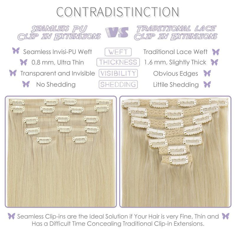 - ♥ 【Hair Extensions Specification】 The NEW Technology Upgrade Version Ultra Seamless Clip in Hair Extensions Human Hair; Length: 14-22"; Quantity: 7pcs/set with 16 Clips Attached; Weight: 110gram. 【New Design: The Width of the Outer Glue is Only 5 mm, which is More Invisible and Comfortable than Ordinary Seamless Clip in hair. Ultra-Thin Roots Fit Perfectly with Your Scalp! Super Flat and Invisible Band 50% Thinner!】