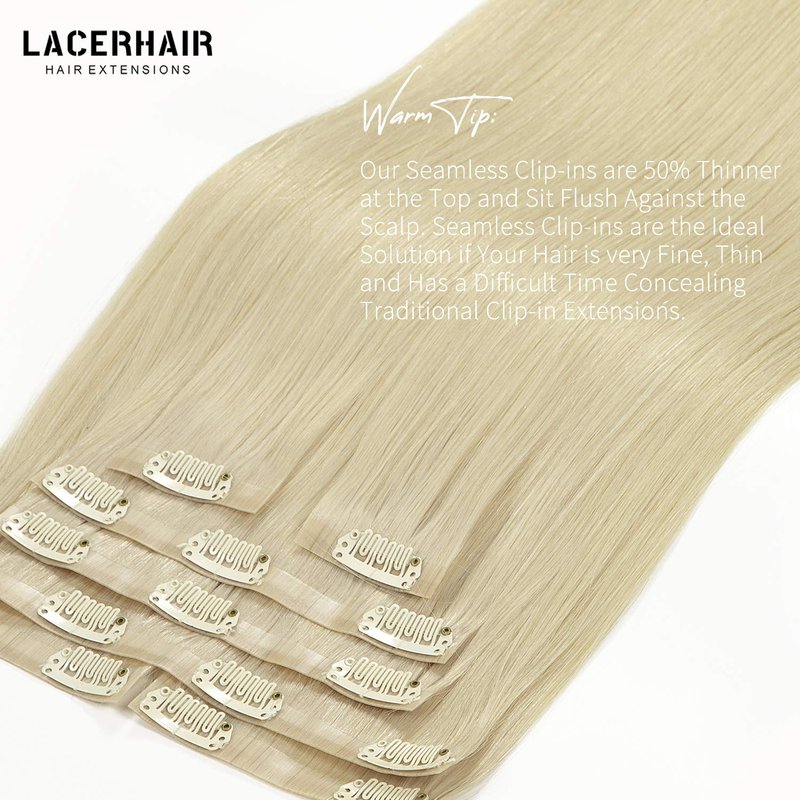 Lacer Hair Seamless Blonde Clip in Hair Extensions 20 Inch Human Hair 7 Pcs 110g #60A Platinum Blonde Hair Extensions Clip ins Invisible Thin Soft Tape Weft Silky Straight Clip On Hair Extensions