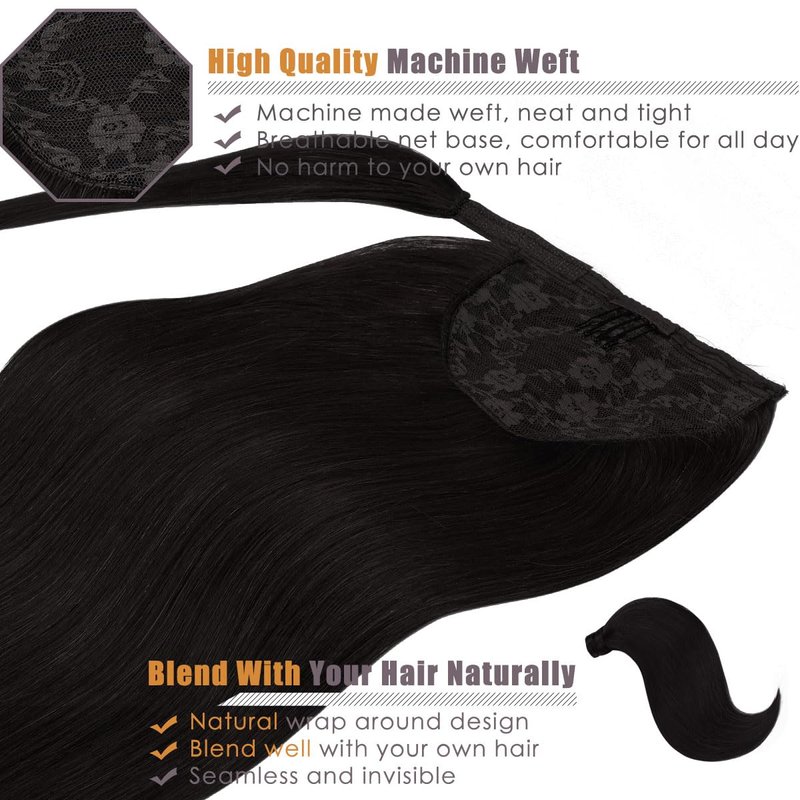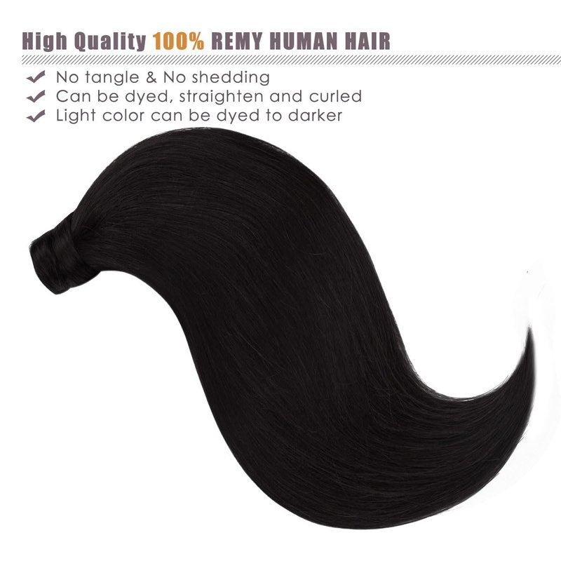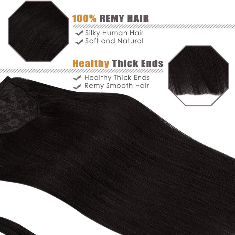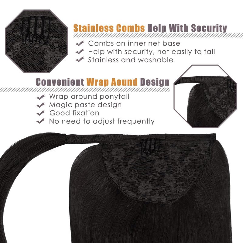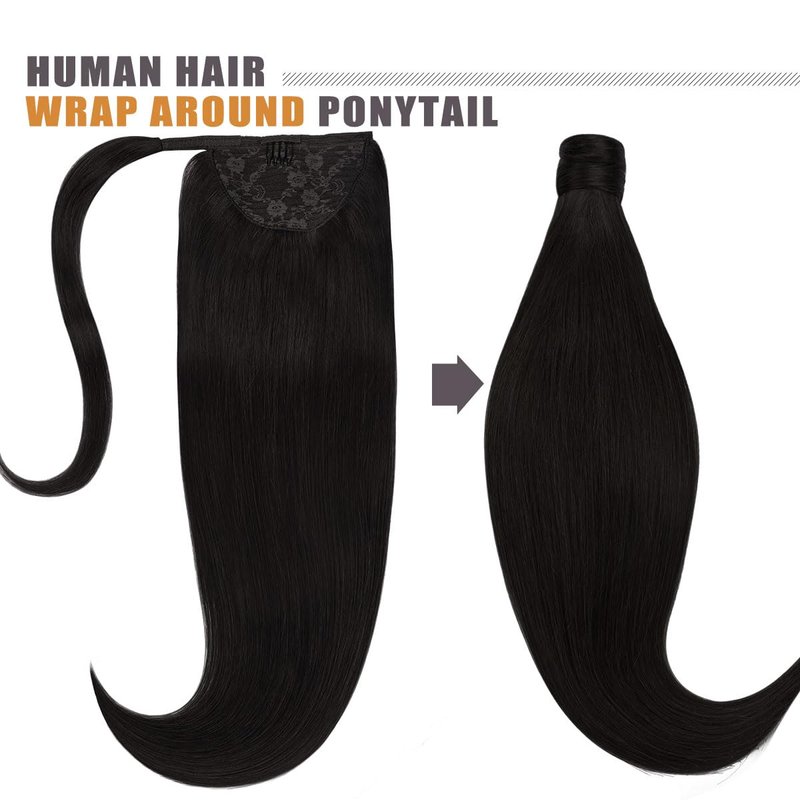 - ♥【Easy Install & Unique Design】— The Wrap Around Human Hair Ponytail Extension Comes with An Easy Install Clip-in Comb and Magic Paste with Hair Ties. It's Easy to Use! Just Clip In and Wrap It Around Your Ponytail to Get that Instant Length. This Ponytail Extension Has a Unique Hair Tie Design to Look It Like Your Real Hair. No One Knows Your Little Secret!