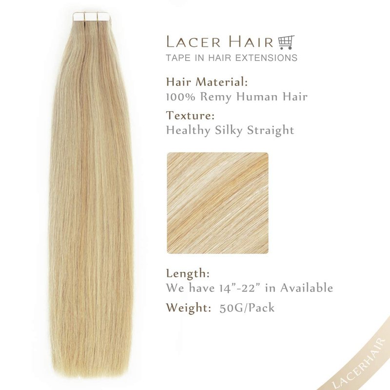 Lacerhair Human Hair Tape in Extensions 18 Inch Human Hair Color Dark Ash Blonde Mixed Light Platinum Blond 100% Natural Blonde Tape in P#18/60A 20PCS 50G Straight Skin Weft