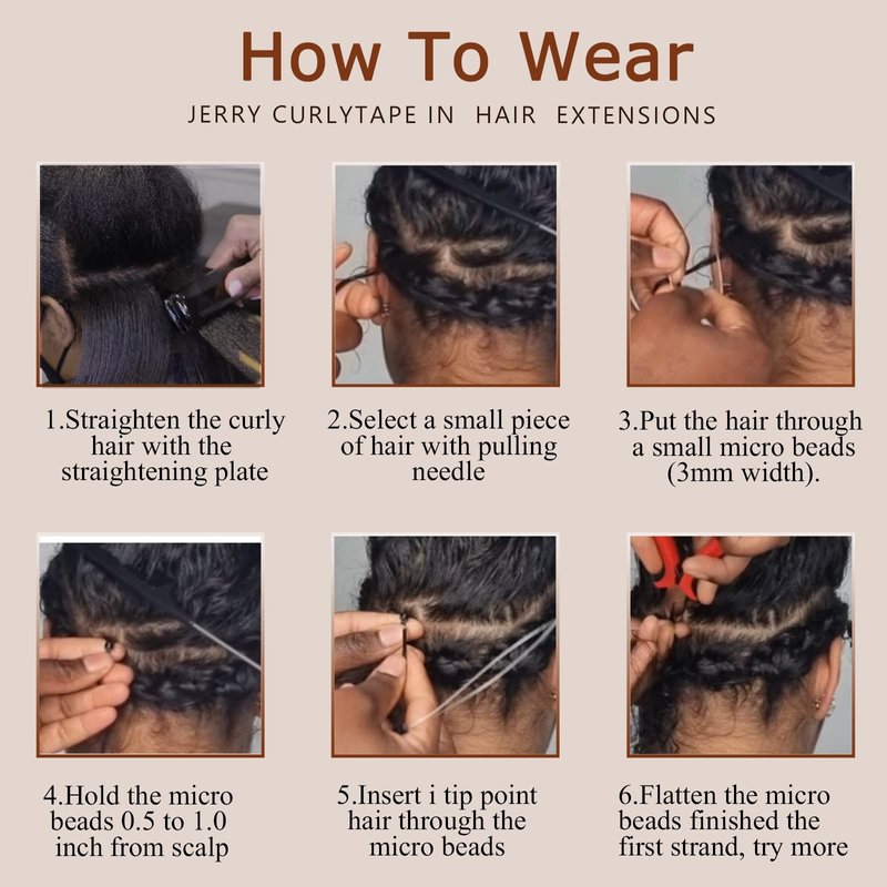 - 【Hair Style & Wearing Place】: I tip hair extensions can be curled and straightened, the recommended temperature is below 180°. Straightening, styling and coloring can cause frizzy straight hair to dry out or split, so we don't recommend it. The kinky straight look the same as the pictures online, great for work, vacation, themed.