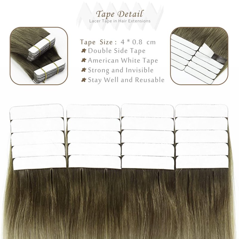 - 【Recommended Quantity】-- We Recommend 2-3 Packs for a Full Head Thin Hair, 3-5 Packs For Thicker Hair. Each Pack Of Lacerhair Tape in Human Hair Extensions is 50g, 20pcs, Light Weight.