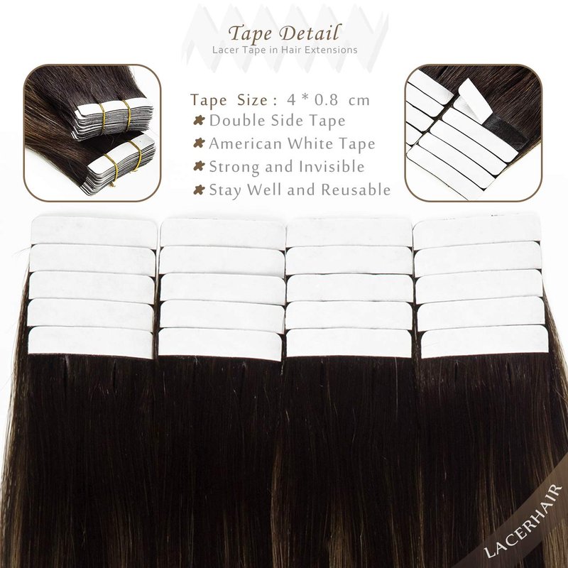 - 【Recommended Quantity】-- We Recommend 2-3 Packs for a Full Head Thin Hair, 3-5 Packs For Thicker Hair. Each Pack Of Lacerhair Tape in Human Hair Extensions is 50g, 20pcs, Light Weight.