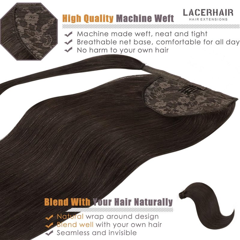 Lacerhair Wrap Around Ponytail Extension Human Hair for Black Women 16 Inch Human Hair Ponytail Hair Extensions Silky Straight One Piece Pony Tails Extensions Human Hair 80g