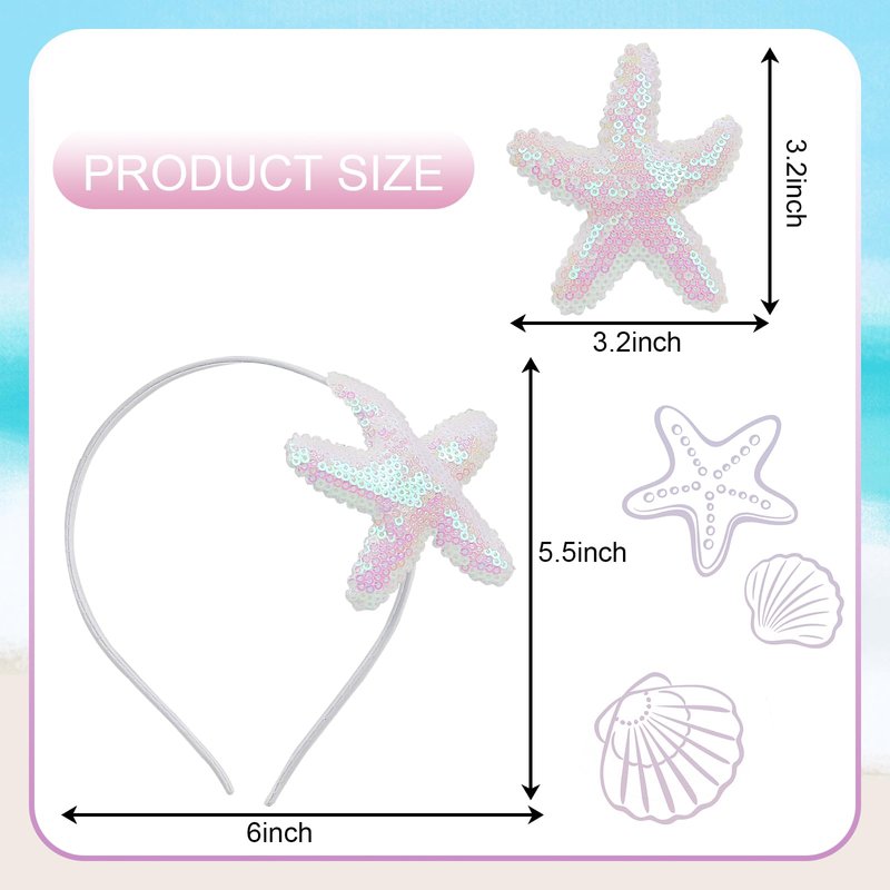 - You will get a set of 4 starfish hair clips and a starfish headband, these summer hair accessories are made of high quality sequins,fabric and metal,3.2 inches in diameter with starfish.