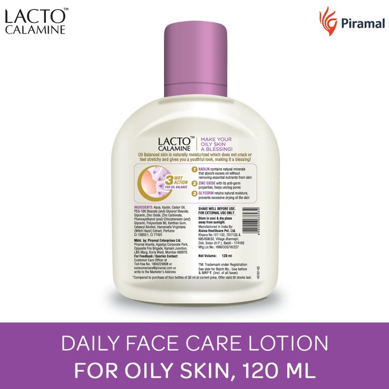 Lacto Calamine Daily Face Moisturizing Lotion for Oily Skin, 4.06 Fl Oz (120 ml), for Pimples, Acne, Dark Spots, and Blackheads