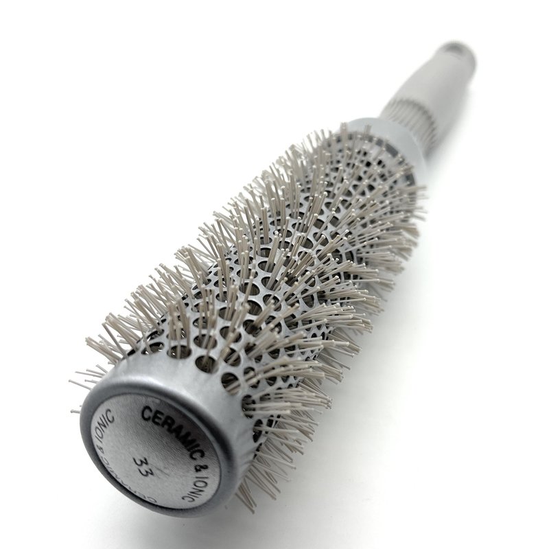 - Ceramic coated barrel heats up quickly and distributes heat evenly; Large vents prevent heat damage by reducing drying time; Heat resistant, ion charged, anti-static bristles conrol frizzy and flyaway hair resulting in smooth, shiny hair