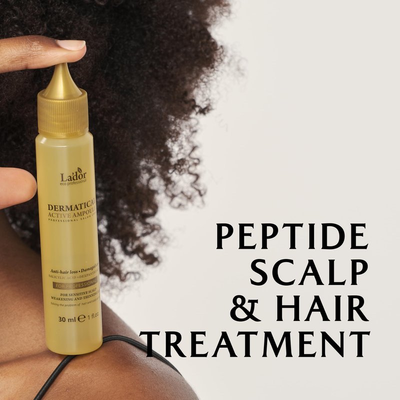 The Dermatical Anti Hair Loss Active Ampoule boasts an unparalleled potency that outstrips our other offerings by a remarkable 100-fold. This advanced formula is meticulously crafted, incorporating a rich blend of six unique peptides, each carefully selected for their profound nourishing properties. These peptides work in harmony to invigorate weakened hair follicles and strengthen damaged hair strands, offering a comprehensive treatment that addresses the root causes of hair loss and breakage. Moreover, the inclusion of Salicylic Acid in this sophisticated formulation plays a pivotal role in rejuvenating the scalp. By gently exfoliating and removing dead skin cells, Salicylic Acid ensures that hair follicles are free from obstructions, thereby fostering an optimal environment for hair growth and vitality. This meticulous cleansing process not only promotes a healthier scalp but also prepares it for the absorption of subsequent treatments. Dexpanthenol is another cornerstone ingredient in this potent ampoule, renowned for its ability to stimulate the synthesis of collagen. Collagen, a fundamental protein, is essential for maintaining the structural integrity and health of hair. By enhancing collagen production, Dexpanthenol contributes to stronger, more resilient hair that is less prone to damage and breakage. Complementing these ingredients, Niacinamide stands out for its capacity to improve hair elasticity. This vital nutrient enhances the hair's resilience, allowing it to withstand physical and environmental damage more effectively. Additionally, Niacinamide plays a critical role in maximizing the scalp's absorption of the ampoule's beneficial components, ensuring that each ingredient penetrates deeply and exerts its full therapeutic effect. Crafted for both efficacy and indulgence, the Dermatical Anti Hair Loss Active Ampoule is a salon-grade, professional treatment that deeply cleanses clogged hair follicles and nourishes damaged hair.