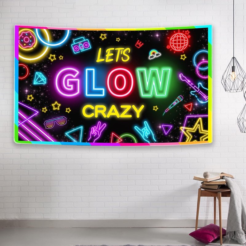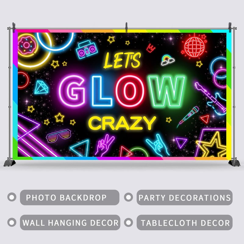 Ladvis Neon Let's Glow Crazy Backdrop, Glow Theme Birthday Background, Party Banner Decorations for Kids Boys Girls Sleppover Party Supplies Photography Photoshoot Props Fabric 59"x35.4"