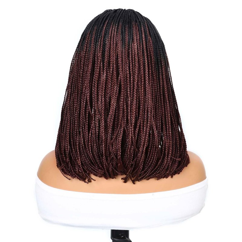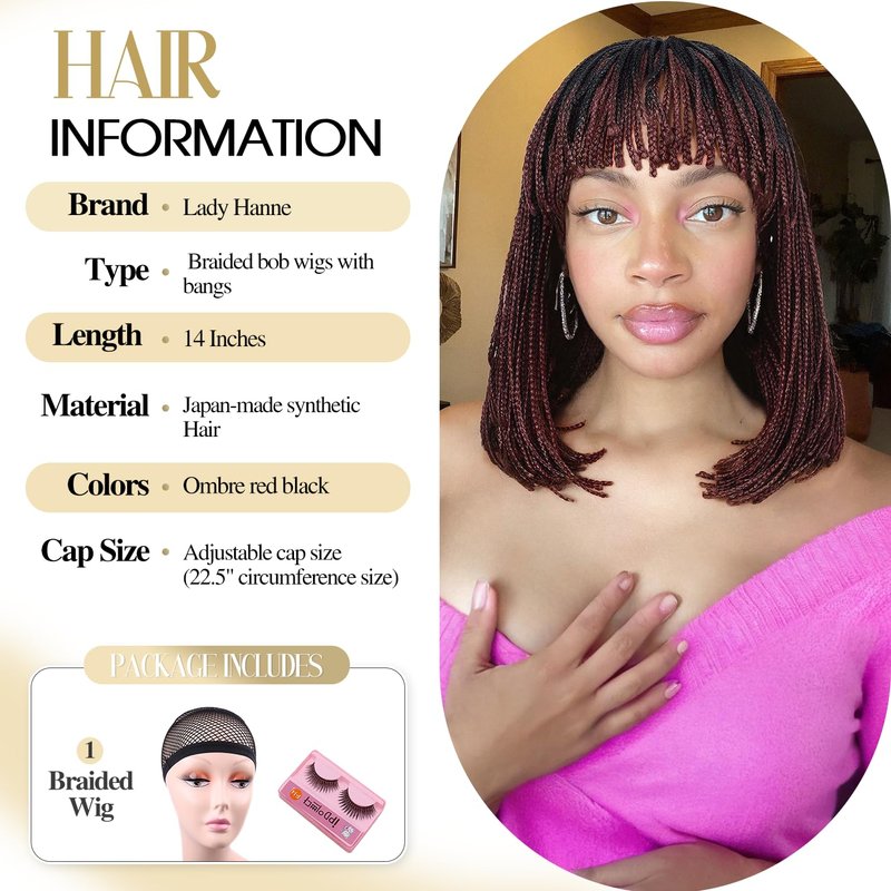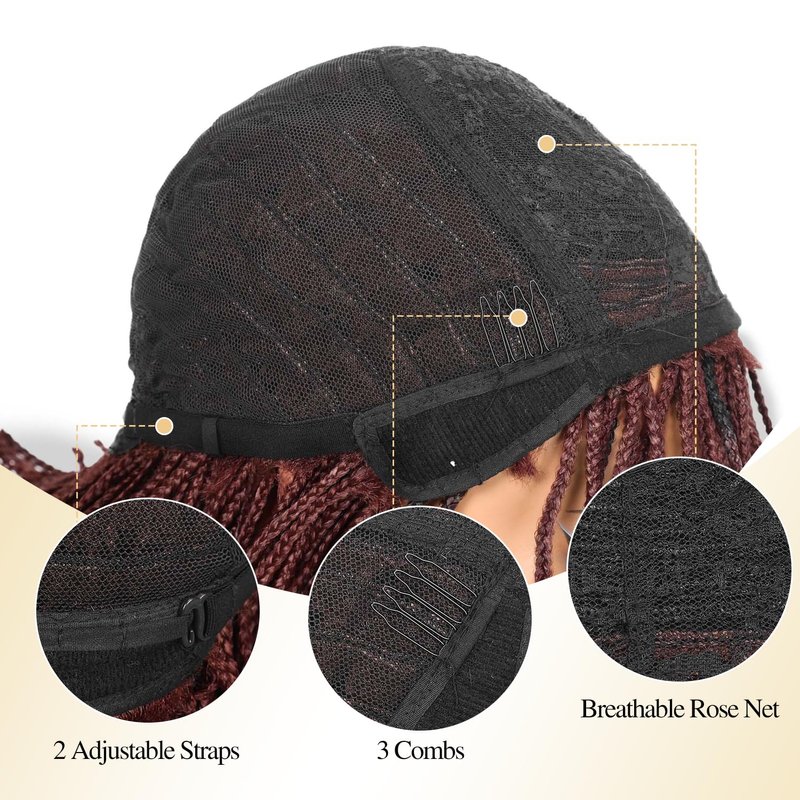Lady Hanne Braided Bob Wigs for Black Women Short Box Braid Wig with Bangs Afro Braid Synthetic Ombre Red Black African American Women Wig