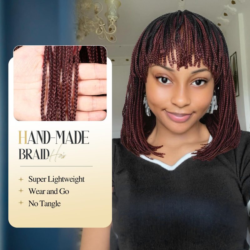 - Suitable for All Occasions:This short box braid wig with bangs is suitable for all occasions such as Halloween, concert, fashion show, theme party, wedding, dating, everyday wear and more. Wear it and you get a realistic and natural look!