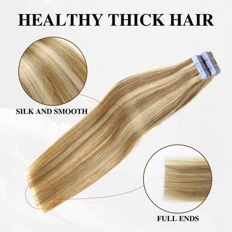 LADY MIRANDA Tape in Hair Extensions Remy Human Hair Full Ends PU Hair Extensions 20 Inches 50g 20Pcs Mixed Blonde Skin Weft Invisible Tape in Human Hair Extensions for Women