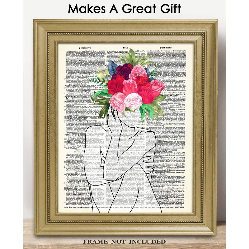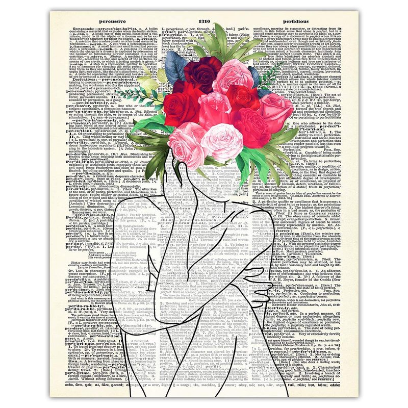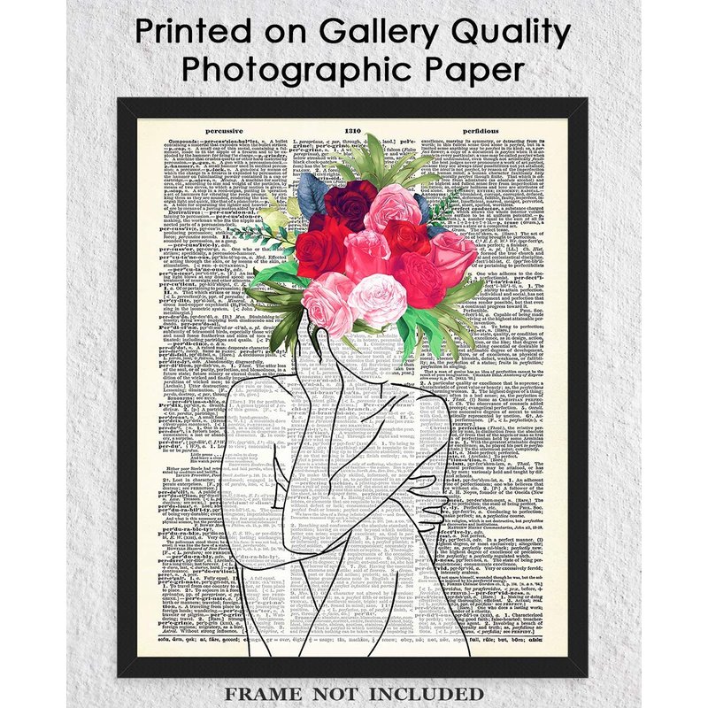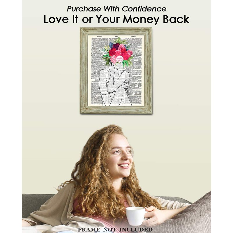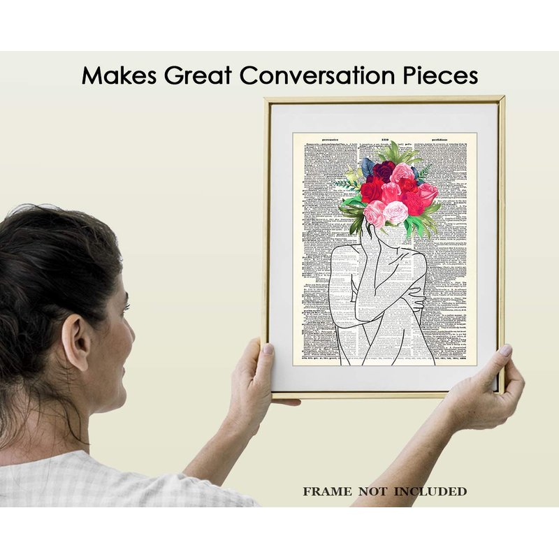 Lady with Flower Head Line Figure Abstract Wall Art: Minimalist, Aesthetic & Boho Wall Art for Home, Office, Bedroom & Living Room Decor | Unframed Posters 8x10"