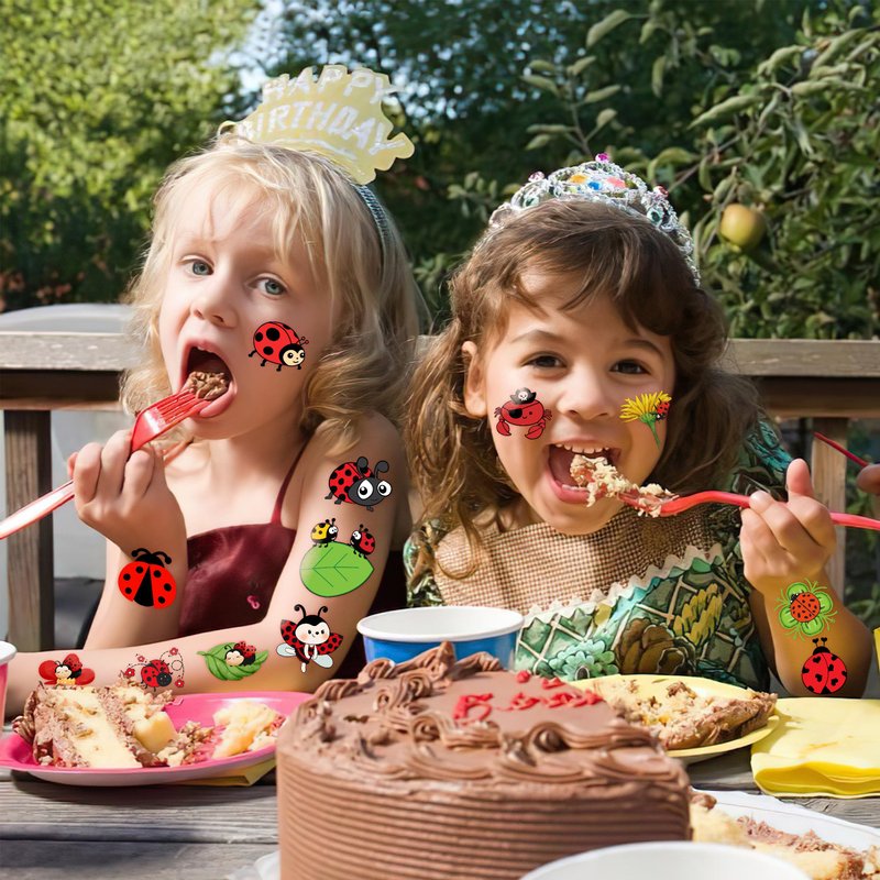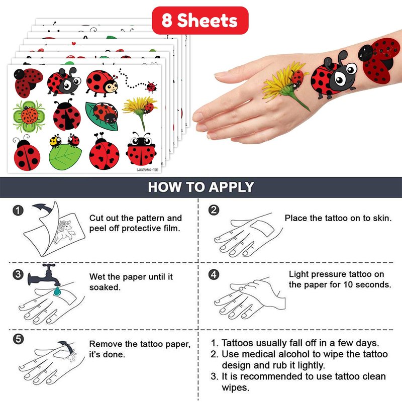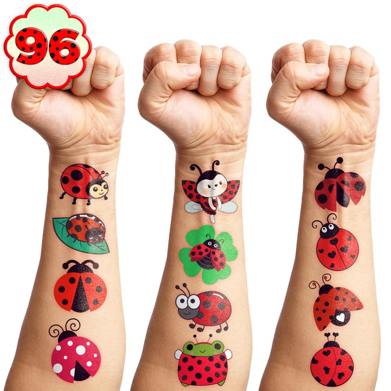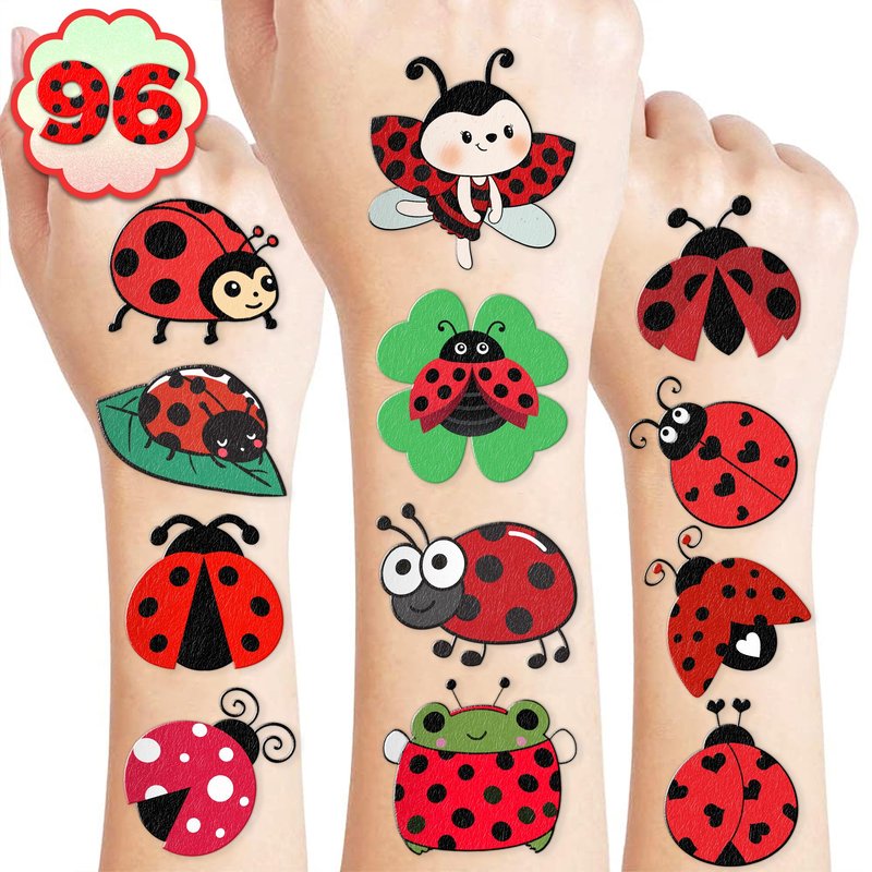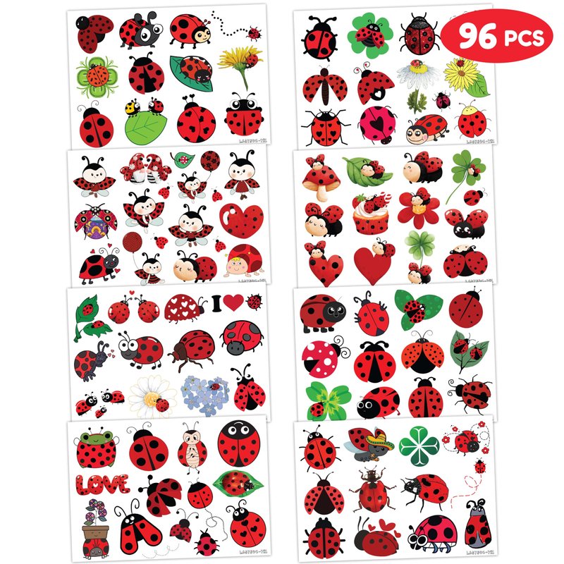 - đăIDEAL TATTOOS FOR THEMED LADYBUG DECORă: This set of temporary LADYBUG-themed tattoo stickers comprises 8 sheets in total, featuring a total of 96 PCS adorable, distinct designs. They are excellent for distributing as party favors and small gifts with a LADYBUG theme for holidays. Each sheet measures 6.1 * 3.1 inches, making them suitable for kids of all sizes.