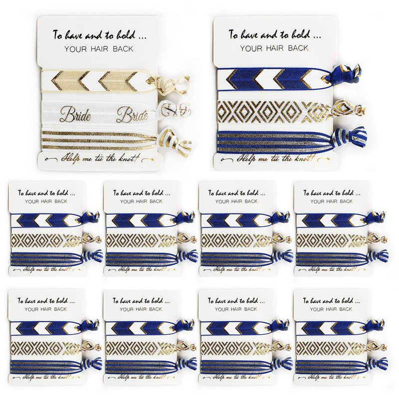 LADY&HOME Bride Tribe Hair Tie, 10 Count - Navy Blue - Bridesmaid, Bachelorette Party Gifts, Wedding Favors