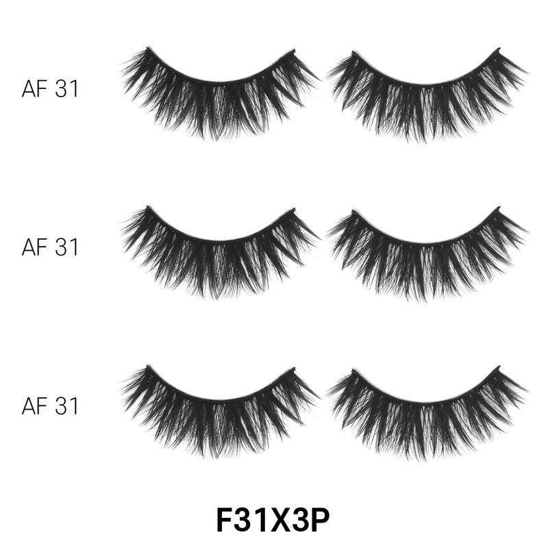 Laflare 3D Cashmere False Eyelashes 3 pcs Multipack, Ultra Soft, Glam, Wispy, Fresh, Luxurious, Cruelty-Free, Reusable, 100% Cashmere Texture, Fake Eyelashes 3 Pairs Eco Pack (F31X3P)