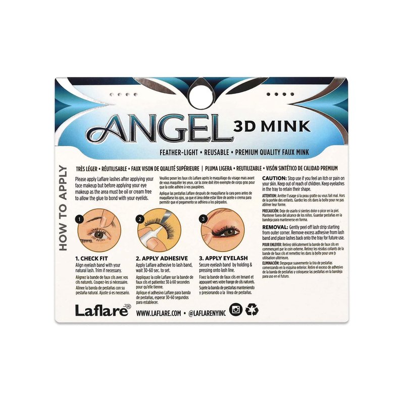 LAFLARE LASHES: Introducing our newest Mink false lashes, 3D Angel Mink. Get glamorous, day-to-night beauty with these friendly, feather-light, fluffy mink lashes. Angel has been designed to create a dramatic and voluminous look, add volume to the lash line creating a striking look. Also our seductive Angel eyelashes have a distinct double-layer design, for a voluminous look from every angle. The lashes are clustered together into little bouquets, which subtly criss-cross for a denser appearance at the base than at the tips. It's a look that's beautifully and glamorous.