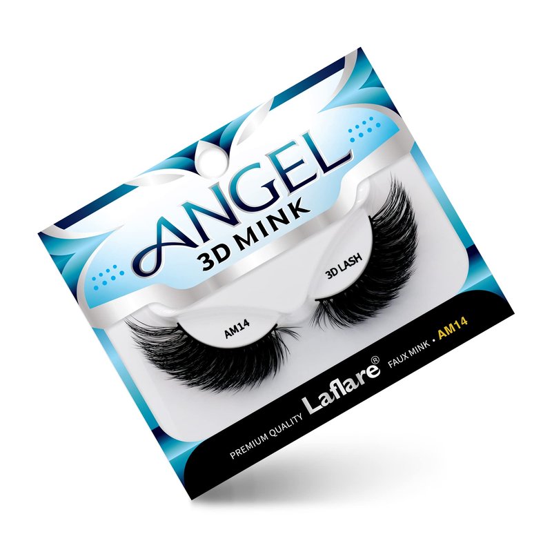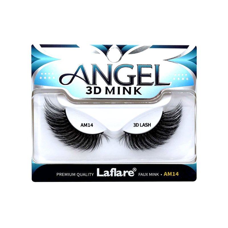 Laflare 3D MINK ANGEL Eyelashes, Soft, Feather-Light, Double-Layer, Voluminous, Glamorous, Fluffy, Striking Look, Reusable Premium Quality False Mink Lashes (AM14)