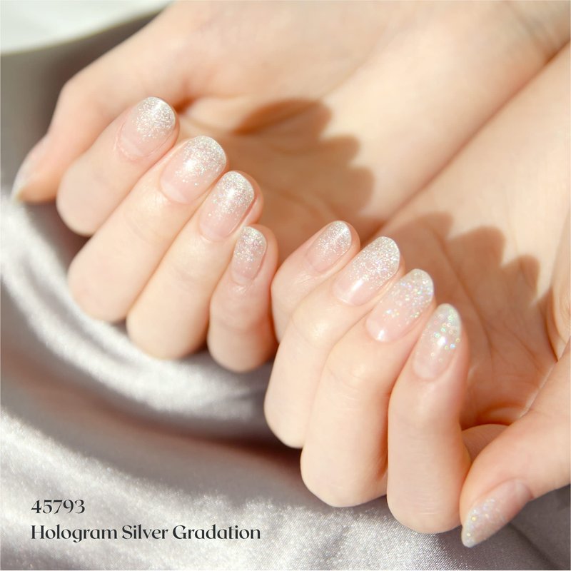 Laflare Gel Glossy Nail Strips, Self Adhesive Gel Nail Polish Stickers with 20 Pcs Double-End Strips Glitter False Nails Including Trimming File (R45793 - Hologram Silver Gradation)