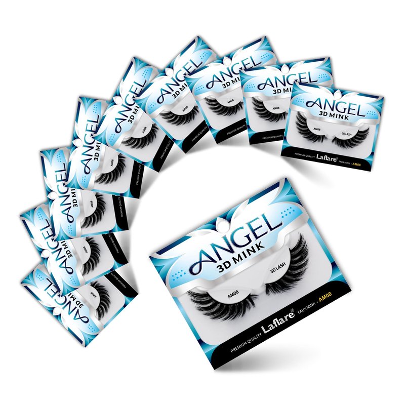 LAFLARE LASHES: Introducing our newest Mink false lashes, 3D Angel Mink. Get glamorous, day-to-night beauty with these friendly, feather-light, fluffy mink lashes. Angel has been designed to create a dramatic and voluminous look, add volume to the lash line creating a striking look. Also our seductive Angel eyelashes have a distinct double-layer design, for a voluminous look from every angle. The lashes are clustered together into little bouquets, which subtly criss-cross for a denser appearance at the base than at the tips. It's a look that's beautifully and glamorous. They are not using animal products; that mean they are Vegan Mink Technology, a revolutionary new process that creates synthetic fibers every bit as fine as real mink, and with the same natural-looking tapered end too – something synthetic lashes often don't have, and which makes all the difference. Our vegan mink false lashes have other benefits too. With the right care, you can wear each pair 15+ times. They're also incredibly soft and light as a feather, meaning they're comfy to wear. The end result is all of the luxury and beauty of mink with none of the cruelty! We think you'll love the versatility of 3D Angel Mink!