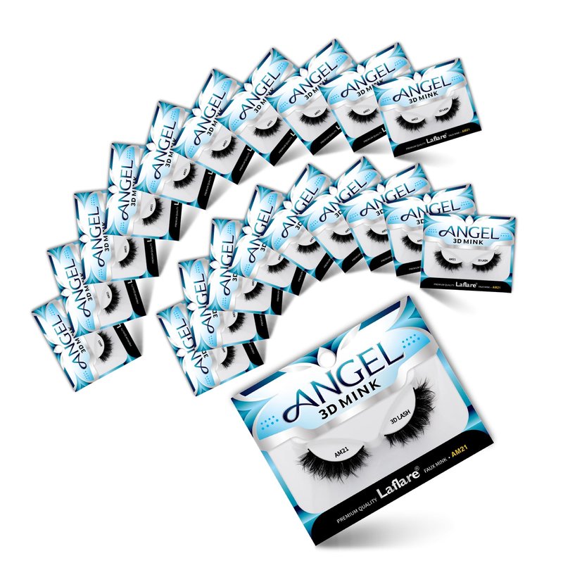 LAFLARE LASHES: Introducing our newest Mink false lashes, 3D Angel Mink. Get glamorous, day-to-night beauty with these friendly, feather-light, fluffy mink lashes. Angel has been designed to create a dramatic and voluminous look, add volume to the lash line creating a striking look. Also our seductive Angel eyelashes have a distinct double-layer design, for a voluminous look from every angle. The lashes are clustered together into little bouquets, which subtly criss-cross for a denser appearance at the base than at the tips. It's a look that's beautifully and glamorous. They are not using animal products; that mean they are Vegan Mink Technology, a revolutionary new process that creates synthetic fibers every bit as fine as real mink, and with the same natural-looking tapered end too – something synthetic lashes often don't have, and which makes all the difference. Our vegan mink false lashes have other benefits too. With the right care, you can wear each pair 15+ times. They're also incredibly soft and light as a feather, meaning they're comfy to wear. The end result is all of the luxury and beauty of mink with none of the cruelty! We think you'll love the versatility of 3D Angel Mink!