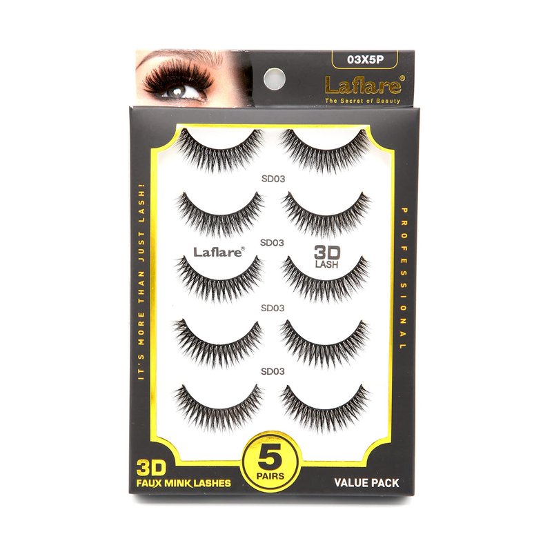 Laflare Premium Silk Lashes 3D Faux Mink Eyelashes Multipack, Light, Natural Looking, Professional Easy to Apply Eyelashes in a Knitted Style 5 Pairs Value Pack (03X5P)