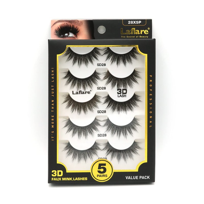 Laflare Silk Lashes 3D Faux Mink Eyelashes Multipack, Light, Natural Looking, Professional Easy to Apply Eyelashes in a Knitted Style 5 Pairs Value Pack (28X5P)