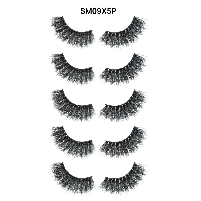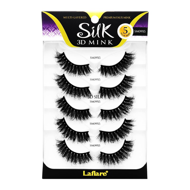 Laflare Silk Mink 3D False Eyelashes Light, Fluffy Natural Looking False Lashes, Wispy Lashes 5 Pairs Value Pack (SM09X5P)