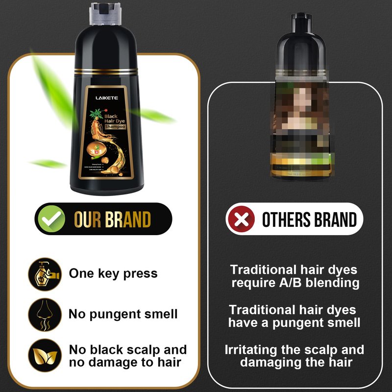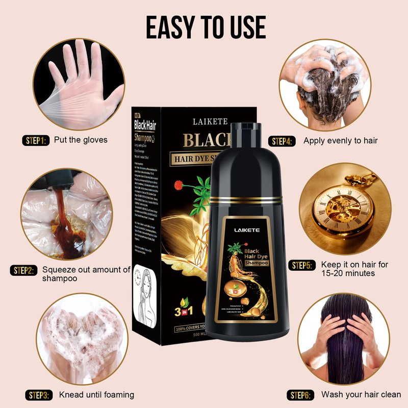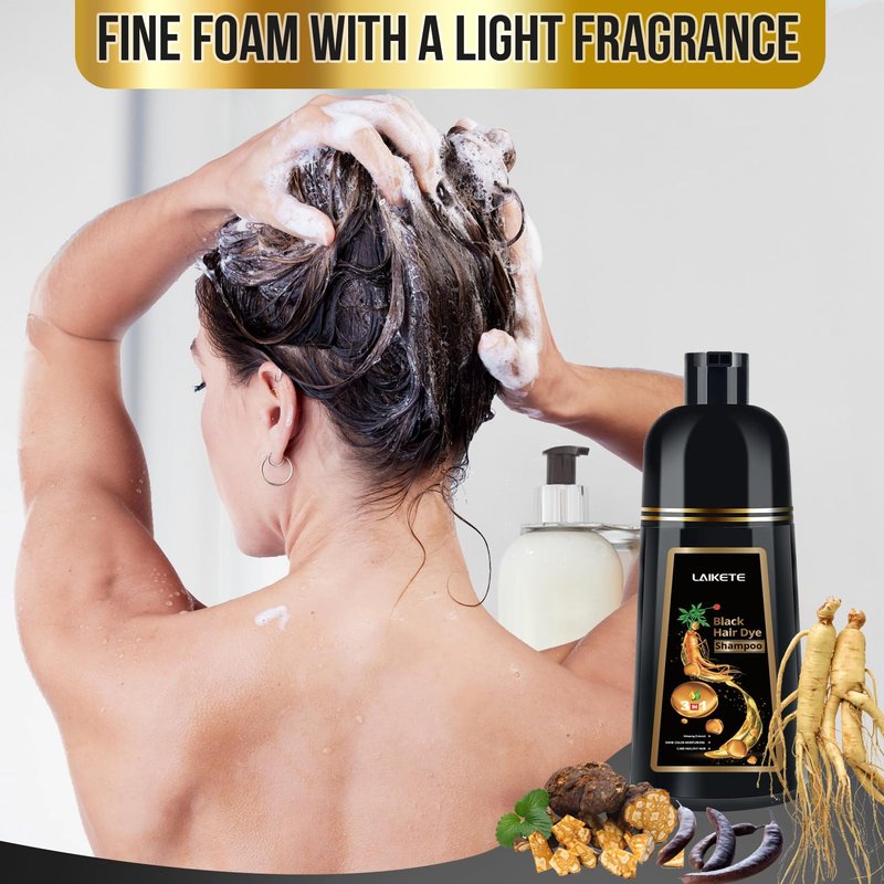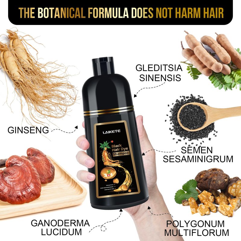 LAIKETE Black Hair Dye Shampoo 3 in 1 for Gray Hair Coverage, Instant Hair Color Shampoo for Men & Women, Herbal Ingredients Hair Color Shampoo in 10-15 Minutes (500mL,17.6 Fl Oz)