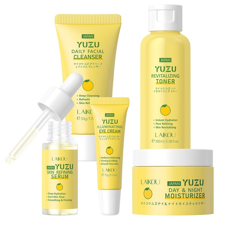 - LAIKOU Skin Care Set YUZU Skin care with Cleanser, Toner, Serum, Eye Cream, Day Night Moisturizer Skin Care Kit 5pcs for Women Teen Girls Mom Daughter Birthday Valentine Mother's Day Christmas