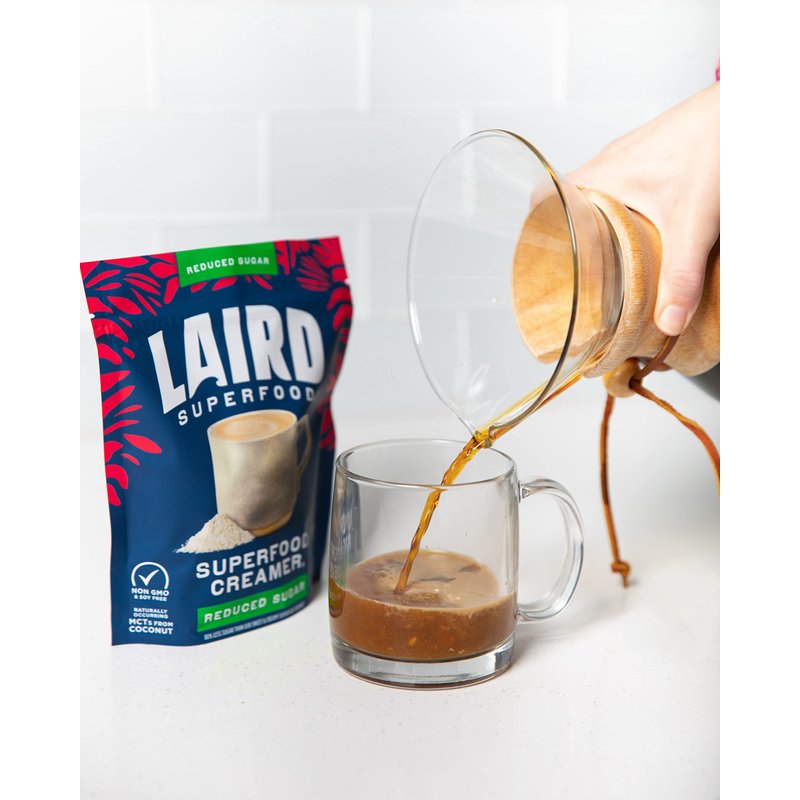 - Laird Superfood Non-Dairy Reduced Sugar Powder Coffee Creamer: Contains one 16 oz. bag of plant-based coffee creamer, unsweetened, non-dairy, and shelf-stable.