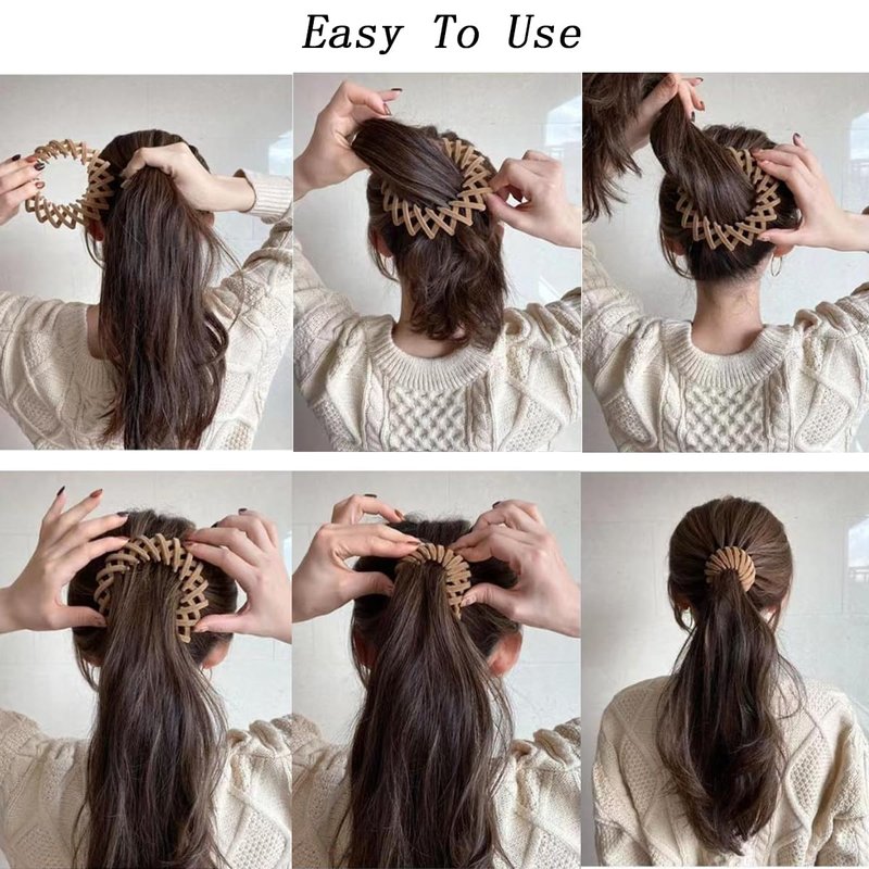 - Convenient and easy to use: Simply open the hair tie disc, thread your hair through it, and then close the clip. Within seconds, you can effortlessly create a beautiful and natural ponytail, bun, or various other hairstyles.