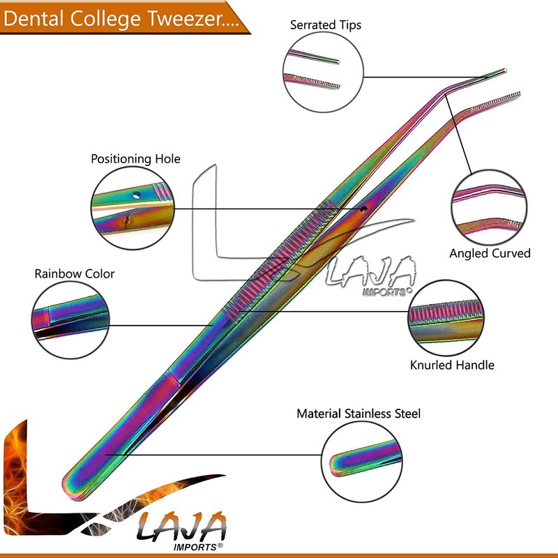 LAJA IMPORTS Dental Hygiene Set - 3pcs Basic Dental Instruments Stainless Steel Dental Rainbow Tooth Pick, Mouth Mirror,Cotton Plier - Dentists Tools Set is Ideal for Personal Use & Pet Friendly