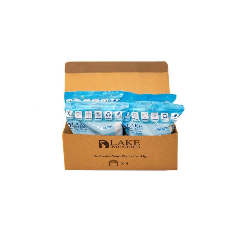 Lake Industries Alkaline Water Pitcher Cartridge Replacement | 150 liters/40 Gallon Capacity | Pure Clean Hydration | 4-Pack