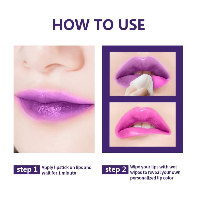 - 【COLOR CHANGING LIPSTICK】Magic lipstick set changes in lipstick color based on your body's temperature and PH.When you apply thick and thin, the effect will be different. The color of the picture is for reference only.