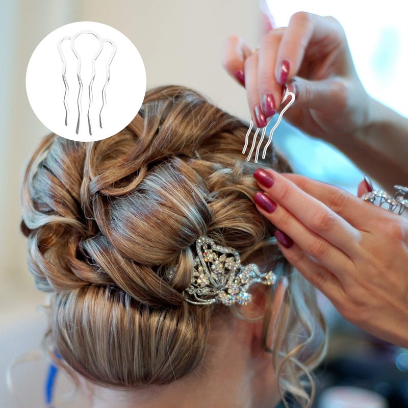 LALAFINA 6Pcs Hair Side Combs Metal Hair Comb Clips U-Shape Hair Combs for Vintage Hairstyle French Twist Comb for Women, Silver