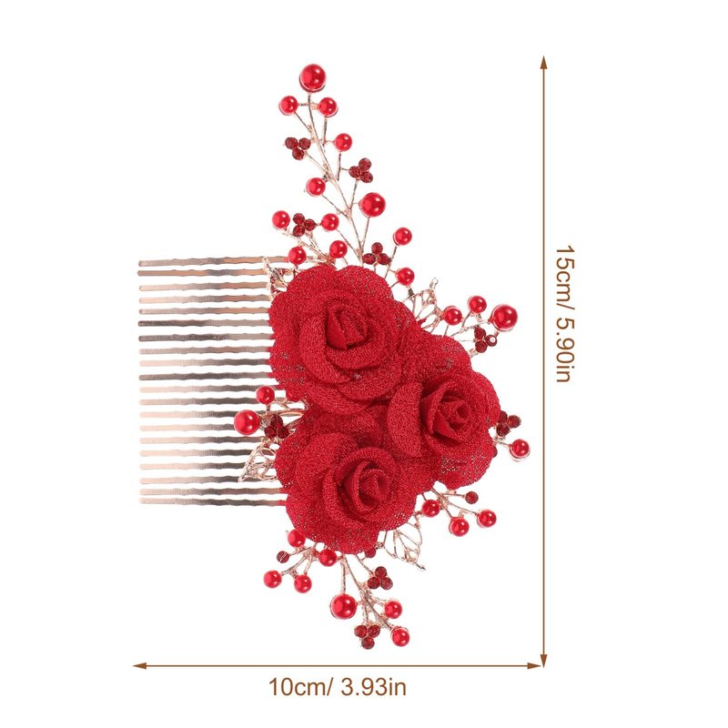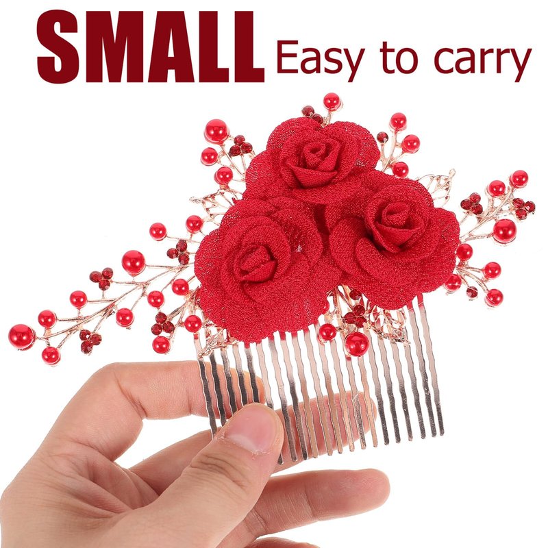 - 💋 Red Floral Hair Comb - A nice addition to your wedding dress, make your hair style look more charming.