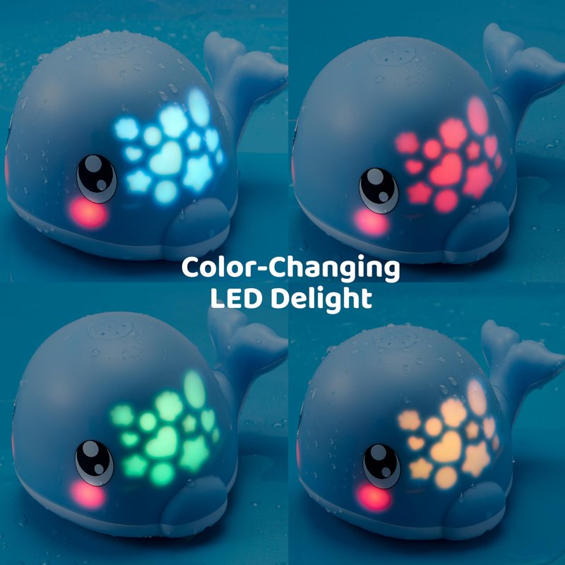 Lalalark Baby Bath Toy Whale Sprinkler, Color-Changing Light-Up Water Toy, 4 Modes, IPX7 Waterproof, 120 Min Fun with 3 AAA Batteries, Vibrant Lights, Gift for Babies & Toddlers 6M+