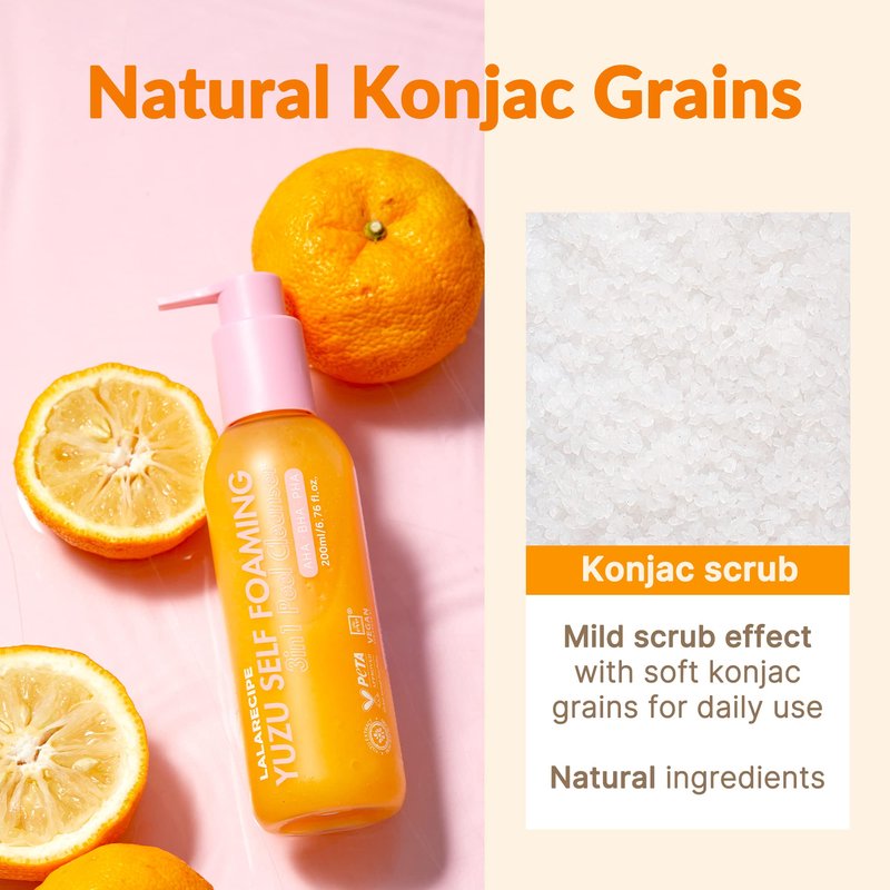 LALARECIPE 3-in 1 Yuzu Foaming Facial Cleanser | Pore Clarifying MakeUp Remover Exfoliating Face Wash | AHA BHA PHA Face Cleanser for Dry Skin | Gentle Facial Cleanser Daily Face Wash (6.6 fl oz)