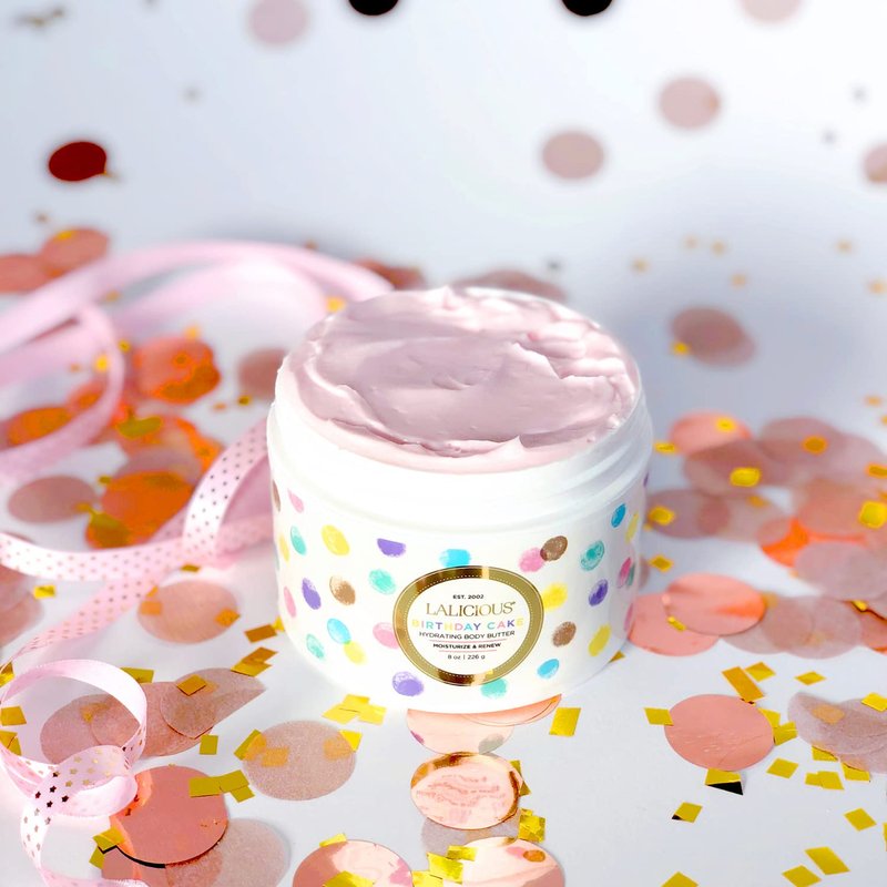 LaLicious Birthday Cake Shimmering Body Butter - Hydrating Body Moisturizer with Shea Butter, Cucumber Extract & Apricot Oil, No Parabens (2oz)
