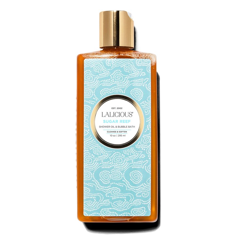 LaLicious Sugar Reef Shower Oil & Bubble Bath - Shower Cleanser with Topical Probiotics & Grapeseed Oil, No Parabens (10oz)