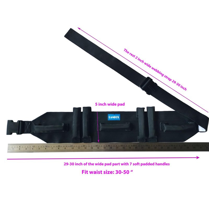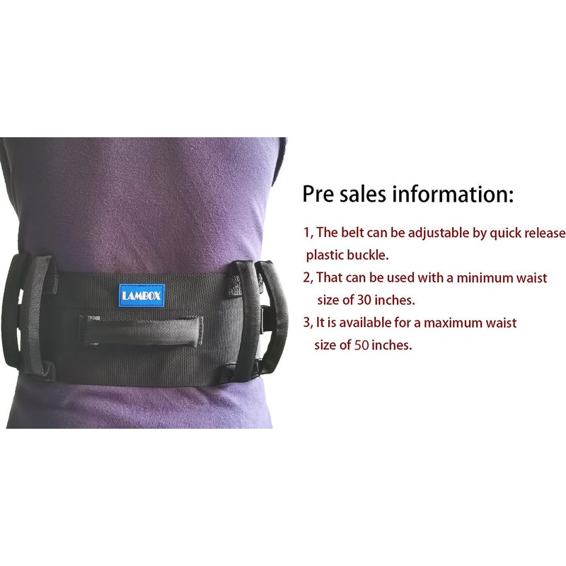 - ✅STRONGER QUALITY WEBBINGS AND STITCHINGS: The Transfer Gait Belt made of strong nylon webbing with high quality stitchings, 5 inch wide pad 29-30 inch as back support.