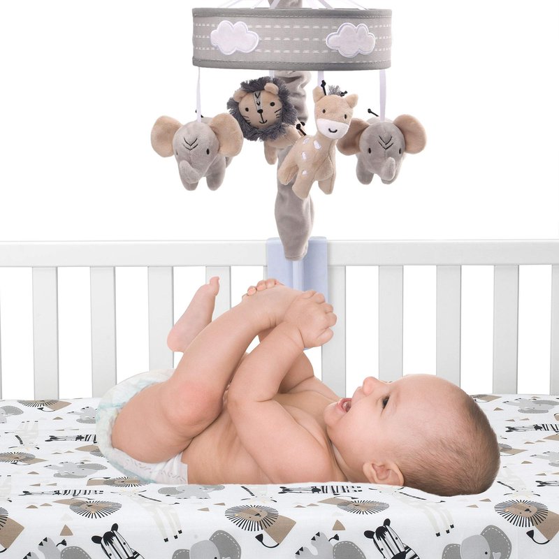 Lambs & Ivy Jungle Safari Musical Baby Crib Mobile - Gray, Beige, White, Animals