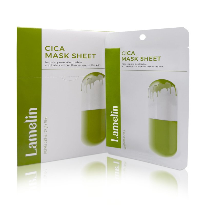 Lamelin Cica Niacinamide Sheet Mask, 10 Pack, Wormwood Tea Trea Anti Aging Skin Elasticity Hydrating Made In Korea